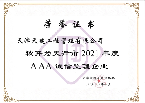 天津天建工程管理有限公司成立于2005年1月,具有房屋建筑工程監(jiān)理、市政公用工程監(jiān)理、電力工程監(jiān)理、機電安裝工程監(jiān)理、工程造價咨詢、工程招標代理資質(zhì)和項目代建資格,被評為“AAA監(jiān)理誠信企業(yè)”,是天津市建設監(jiān)理協(xié)會理事單位。公司順利通過ISO9000、ISO14000、ISO45001三體系認證,并且體系運行持續(xù)有效,始終保持監(jiān)理、咨詢服務滿意率100%、合同履約率100%。...